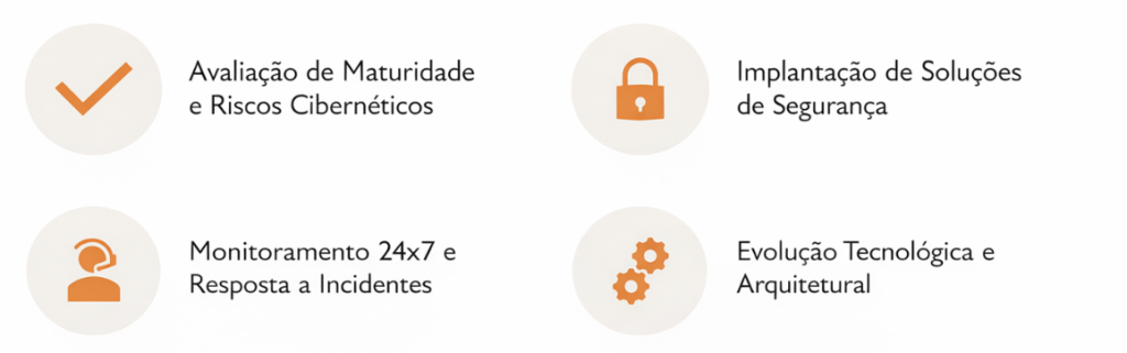 Defesa robusta para redes e sistemas críticos, protegendo informações sensíveis e continuidade operacional.